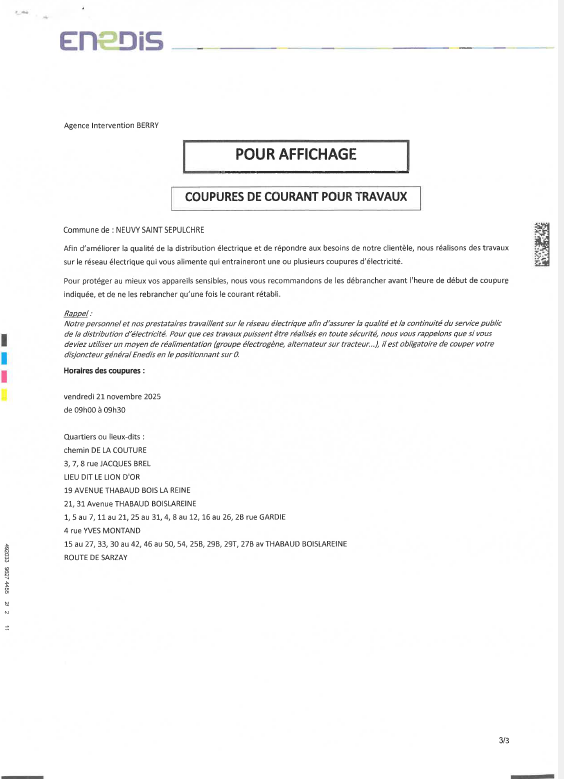 Coupure EDF 20 novembre